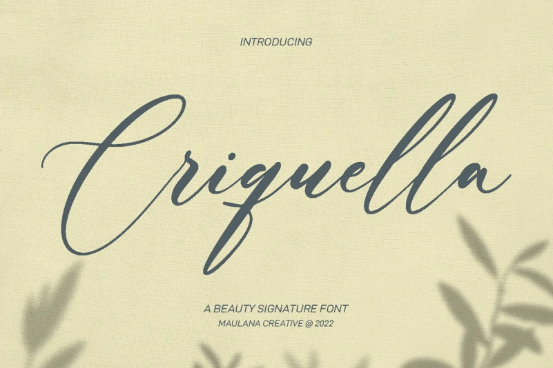 Criquella Font is a fancy signature script font. With high contrast stroke, fun character with a bit of ligatures and alternates. To give you an extra creative work. Criquella font support multilingual more than 100+ language. This font is good for logo design, Social media, Movie Titles, Books Titles, a short text even a long text letter and good for your secondary text font with sans or serif. Make a stunning work with Criquella font.