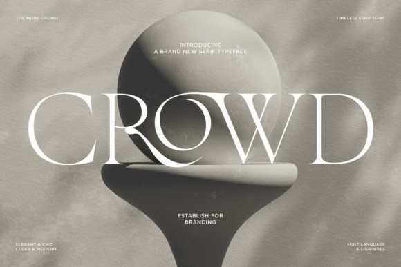 More Crowd Font, a serif typeface that skillfully combines the elegance of classic design with the freshness of modern aesthetics. Its striking contrast and smooth curves create a visual impact that elevates any creative endeavor. Whether you are designing an elegant magazine publication, building a distinct brand identity, or crafting an engaging website, More Crowd brings a sophisticated and versatile class that will make your work shine.