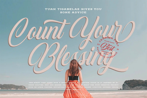 Crowlen Script comes with uppercase, lowercase, numerals, punctuations and so many variations on each characters include opentype alternates. Mix and match this font with a bunch of alternative to fit your project. This font gives you so many options to create something unique