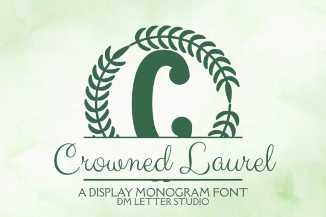 This font is used only for demos (Demo license). If you want to use this font for commercial use please contact: https://lettercrafted.com/product/crowned-laurel-split-monogram/