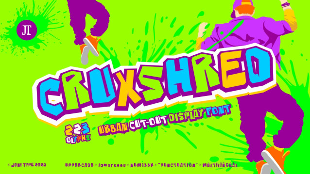 With its playful yet chaotic style, Cruxshred brings a DIY spirit to your typography — loud, unapologetic, and impossible to ignore.