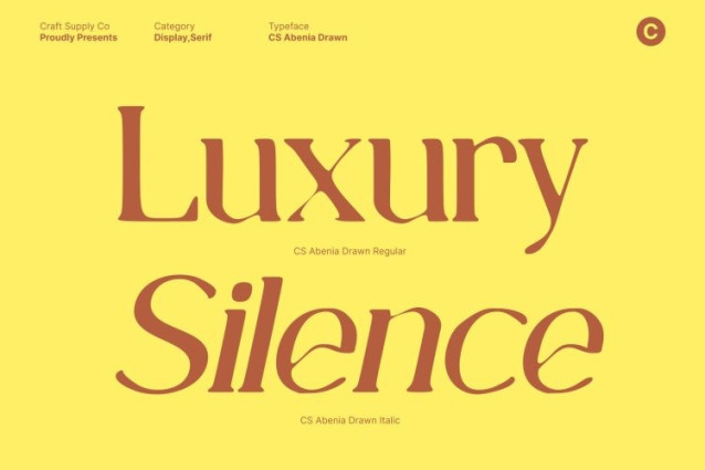 CS Abenia Drawn Font This is an elegant serif typeface that combines classic sophistication with subtle hand-drawn texture. Its well-proportioned letterforms and graceful serif details create a polished, refined appearance that feels both timeless and contemporary. Each character is crafted with precision, delivering a smooth rhythm that communicates confidence, elegance, and high-end appeal.