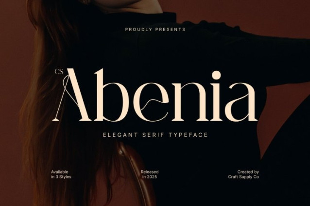 CS Abenia Font This is an elegant serif typeface crafted to embody sophistication, balance, and refined aesthetics. Its well-proportioned letterforms and graceful serif details create a polished appearance that feels timeless yet relevant. Every character is designed with precision, delivering a smooth visual rhythm that communicates confidence, class, and high-end appeal. This typeface elevates typography into a statement of taste and quality.