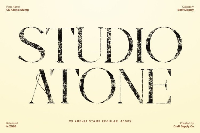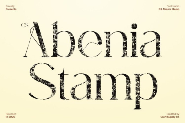 CS Abenia Stamp Font This is an elegant serif typeface designed to express sophistication, balance, and timeless beauty. Its well-proportioned letterforms and graceful serif details create a polished visual rhythm that feels confident and high-end. Every character is carefully crafted to deliver a refined appearance that elevates typography into a statement of taste and quality.