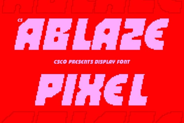 CS Ablaze Pixel Font This is a bold display sans serif font constructed from blocky, brutalist shapes and a strong geometric foundation, enhanced with distinctive pixel detailing. Its heavy structure and rigid construction create an uncompromising visual presence, while the pixel elements introduce an old-digital character inspired by early computer graphics and retro technology.