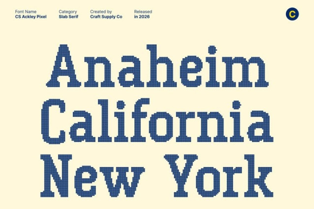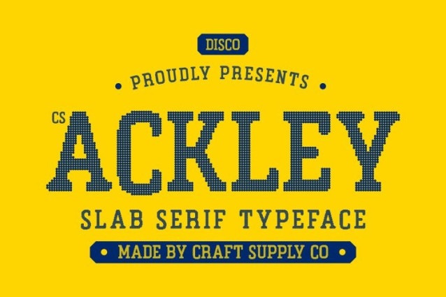 CS Ackley Disco Font This is a bold slab serif font designed to deliver a powerful industrial presence with confident visual weight. Its thick blocks, sturdy serifs, and solid construction create a commanding look that feels strong, dependable, and unmistakably bold. Every letter is built to stand firm and demand attention.