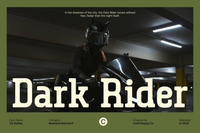CS Ackley Font This is a slab serif font crafted to deliver a powerful, industrial, and highly assertive visual impact. Its thick blocks, sturdy serifs, and confident structure create a commanding presence that immediately grabs attention.