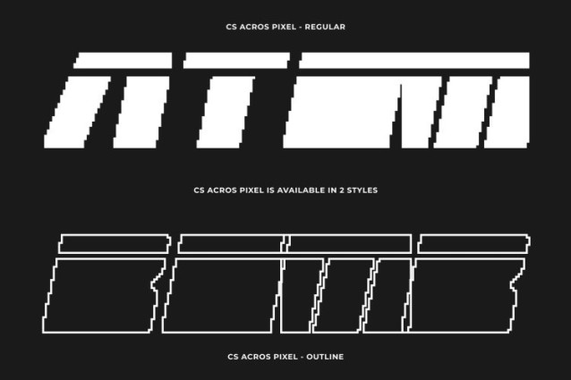 CS Acros Pixel Font This is a futuristic display font powered by bold digital energy and a strong visual presence. Its blocky, techno-inspired construction instantly communicates innovation and momentum, making it ideal for designs that aim to feel modern, powerful, and cutting-edge. The pixel style reinforces its digital roots, giving it a distinctly tech-forward attitude.
