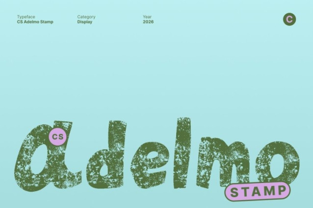 CS Adelmo Stamp Font This is a modern handwritten display font that blends lively, expressive strokes with a confident contemporary structure. Its naturally drawn letterforms create a friendly rhythm that feels spontaneous and full of joy. Enhanced with a stamp effect, the font gains a textured, slightly vintage character that adds visual depth and charm.