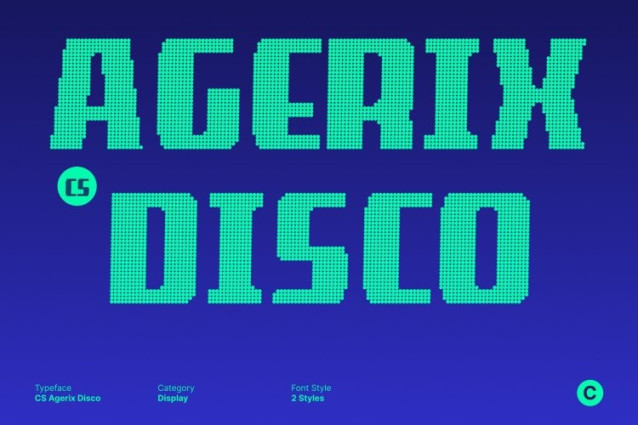 CS Agerix Disco Font This is a bold geometric sans serif font that combines industrial strength with smooth, precise construction. Built on clarity and structure, each character delivers a confident and contemporary presence. The result is a modern typeface that communicates innovation, technical excellence, and bold visual authority.