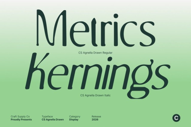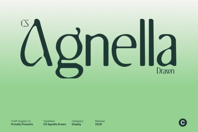 CS Agnella Drawn Font This is an elegant serif font created to express sophistication, refinement, and timeless beauty, now enhanced with a subtle drawn texture. Its carefully crafted curves and balanced proportions deliver a high-end aesthetic, while the handcrafted finish adds warmth and individuality. This combination results in a serif that feels luxurious yet soft, polished yet expressive.