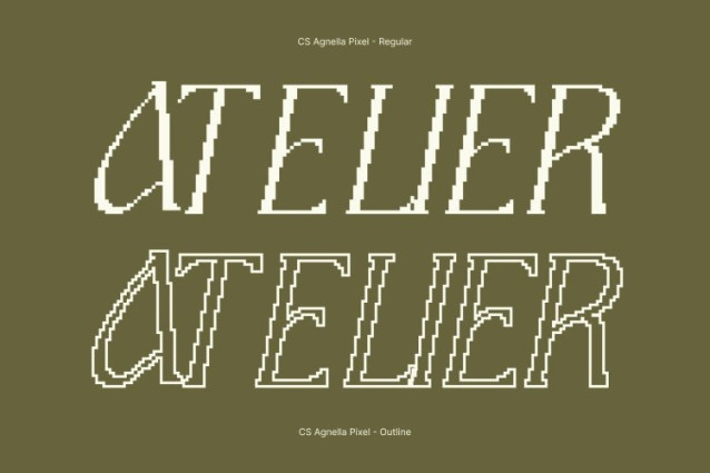 CS Agnella Pixel Font This transforms timeless serif elegance into a modern pixel-styled display. Built with clean, geometric edges and subtle pixel detailing, it preserves the sophistication and grace of traditional serifs while giving it a distinctive retro-digital aesthetic. Every letter balances refinement with a sharp, pixel-perfect structure, making it ideal for designs that merge classic luxury with modern flair.