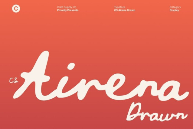 CS Airena Drawn Font This is a romantic script font inspired by the effortless beauty of Mediterranean handwriting. Its flowing strokes and elegant curves create a soft visual rhythm that feels warm, refined, and emotionally rich. The graceful letterforms glide naturally, giving every word a sense of intimacy and timeless sophistication.