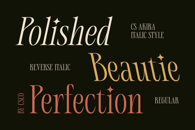 Timeless Aesthetic with a Contemporary Edge While rooted in classic serif traditions, CS Akira brings a fresh, contemporary twist through its crisp angles and refined proportions. Its modern elegance makes it ideal for brands and layouts that seek a balance between heritage and innovation—suitable for fashion lookbooks, magazine spreads, and premium lifestyle branding.