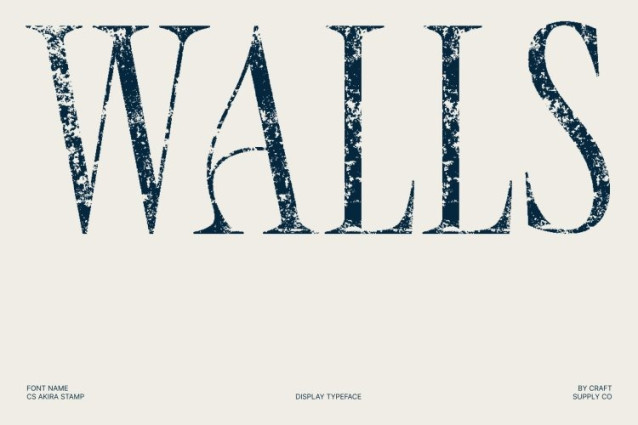 CS Akira Stamp Font This is a modern serif typeface built on clean lines, balanced proportions, and understated sophistication. Its smooth, confident letterforms create an elegant visual presence without excess ornamentation. Enhanced by a subtle stamp effect, the font gains depth and character while maintaining its minimalist clarity.