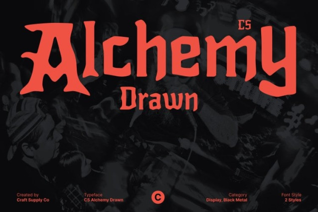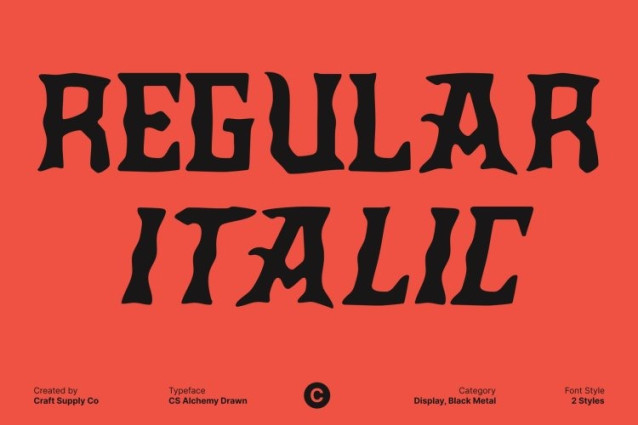 CS Alchemy Drawn Font This is a black metal display font forged from raw energy and uncompromising attitude. Inspired by extreme music culture, this typeface features jagged spikes, chaotic strokes, and razor-sharp edges that radiate darkness, aggression, and untamed power. Every letterform feels brutal and fearless, capturing the primal spirit of black metal aesthetics in its purest form.