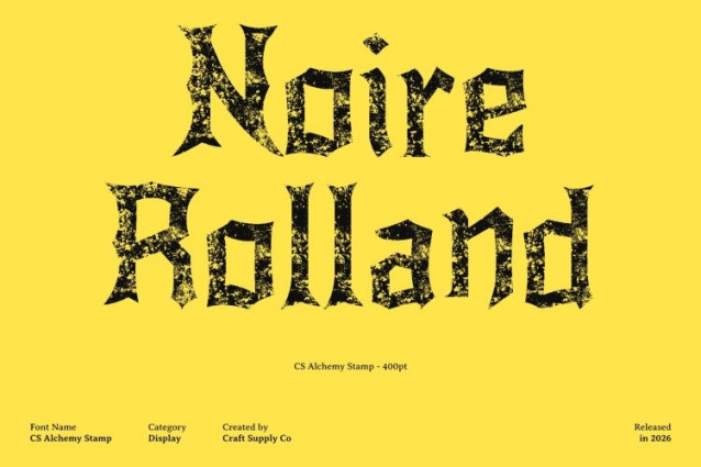 CS Alchemy Stamp Font This is a black metal display font that embodies raw energy, rebellion, and primal darkness. Built with jagged spikes, chaotic strokes, and razor-sharp edges, this typeface delivers an aggressive and untamed visual impact. The added stamp effect introduces worn details and irregular textures, giving each letterform a distressed, old-world character that feels brutal, menacing, and unapologetically fierce.