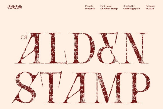 CS Alden Stamp Font This is a modern display serif typeface defined by thin, elongated, and tapered strokes that express refined luxury. Its slender proportions and elegant construction create a contemporary visual presence, while the subtle stamp effect adds depth and character without diminishing its clean aesthetic.