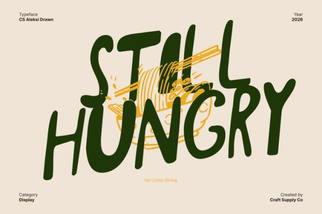 CS Aleksi Drawn Font This is a carefree handwritten display font that celebrates imperfection as its greatest strength. Featuring a loose, sketch-like construction and a natural drawn texture, each letter feels spontaneous and full of life. Its imperfect strokes create an authentic, human presence that brings warmth, personality, and expressive energy to any design.