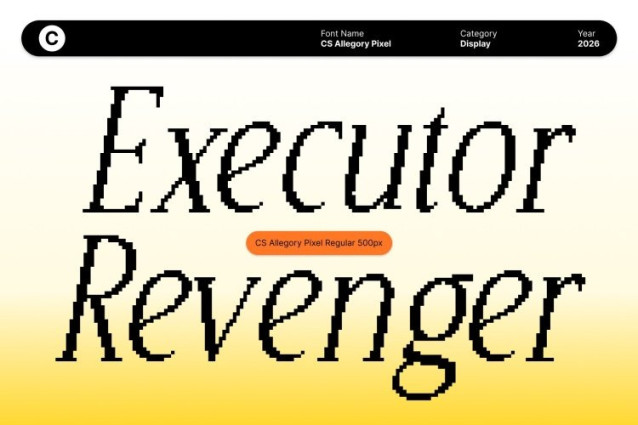 CS Allegory Pixel Font This is an elegant serif font that draws inspiration from the refined artistry of Renaissance-era letterforms. Its graceful curves, classic proportions, and thoughtful structure evoke a sense of heritage and intellectual depth, while its clean execution ensures relevance in modern design contexts. Every character is carefully composed, delivering a timeless aesthetic that feels both cultured and contemporary.