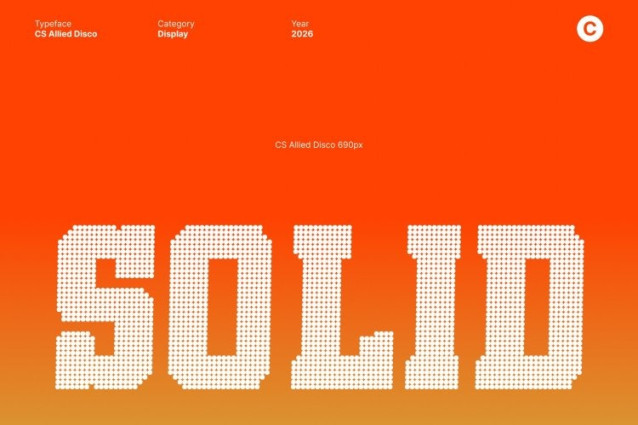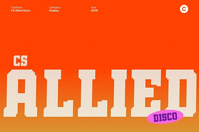 CS Allied Disco Font This is a powerful slab serif font designed to deliver strength, energy, and assertiveness. Its bold structure and solid serifs create a sporty, competitive tone that feels modern and commanding. Each letter stands firm and confident, making an immediate visual impact that captures attention at a glance.