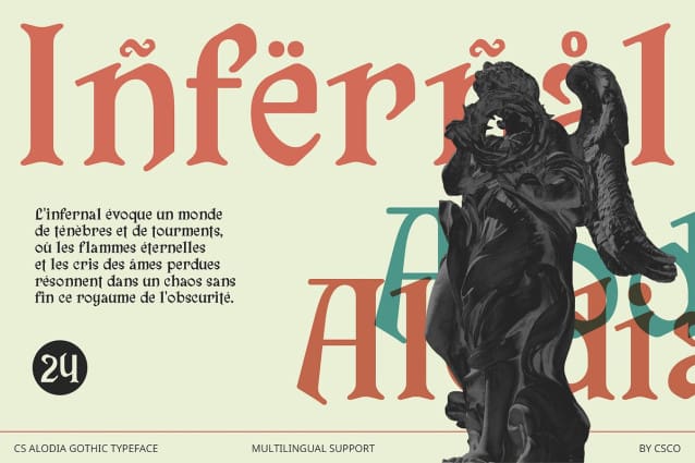 Ideal for High-Impact Designs Whether used for compelling headlines, captivating posters, or impactful branding, CS Alodia ensures that your designs stand out with its unique and sophisticated look. The font’s combination of historical intricacy and bold design elements makes it perfect for high-impact projects that require a touch of classic elegance and a memorable visual impression. Embrace the grandeur of the past with CS Alodia and bring a touch of medieval majesty to your modern designs.