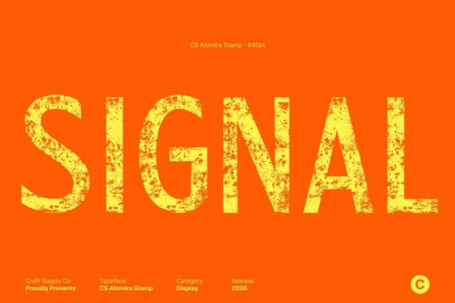 CS Alondra Stamp Font This is a modern sans serif font built for clarity, professionalism, and visual balance. Its simple, elegant letterforms create a sleek and minimalist aesthetic. The subtle stamp effect adds texture and depth, giving the font a handcrafted, slightly vintage character while maintaining its clean, modern appeal.