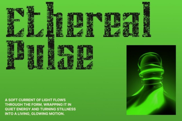 The font’s structured anatomy delivers a powerful and engineered appearance. Strong vertical strokes, firm serifs, and disciplined proportions create a sense of stability and force. Enhanced by the stamp effect, these rigid forms gain depth and personality, making the font feel tactile, bold, and visually assertive.