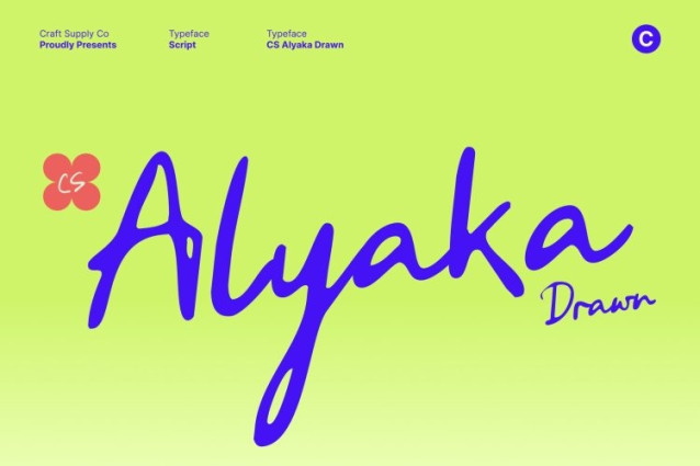 CS Alyaka Drawn Font This is a handwriting script font enhanced with a drawn effect, giving each letter a soft, textured, and artistic character. Inspired by natural pen strokes, it captures the warmth, authenticity, and fluid rhythm of real handwriting, making every word feel genuine, approachable, and full of personality.