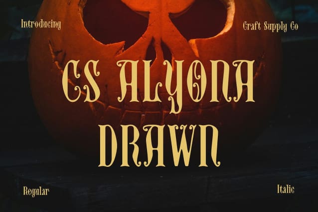 A Statement Font for Diverse Projects CS Alyona Drawn’s unique combination of bold gothic forms and hand-drawn detailing makes it a powerful choice for various design projects. It excels in larger formats like headlines, banners, and signage, where its intricate details can be fully appreciated. Additionally, its gothic elegance and textured appearance make it suitable for logos, packaging, and branding designs that need a distinctive and memorable touch.