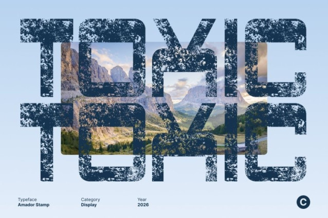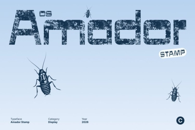 CS Amador Stamp Font This is a reverse contrast sans serif font that fuses masculine confidence with bold contemporary design. Built from strong geometric forms and assertive proportions, this typeface delivers a powerful visual impact. The addition of a stamp texture introduces a rugged, vintage character, giving the modern structure a raw, handcrafted edge that feels both strong and expressive.