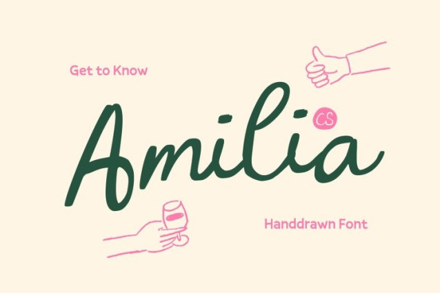 CS Amilia Font This font is an artistic handwritten script designed with fluid strokes and expressive curves that bring a sense of beauty and warmth to any project. Each letter flows naturally, creating a graceful handwritten feel that stands out with charm and personality. Its smooth, organic movement makes it perfect for designers seeking a stylish and visually engaging script.