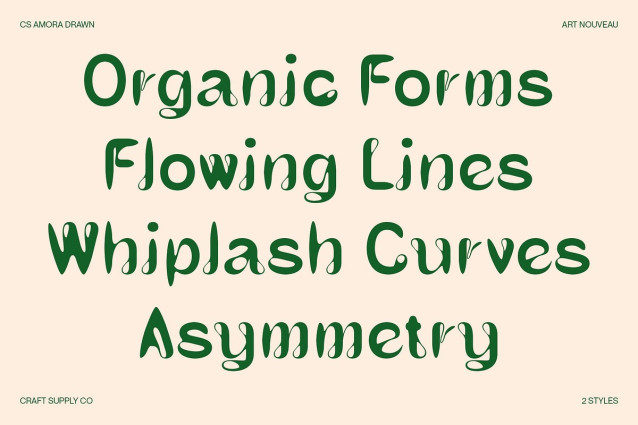 CS Amora Drawn Font – This is a modern sans-serif font that merges the ornamental charm of Art Nouveau with the clarity and simplicity of contemporary design. Its graceful curves and flowing shapes evoke classic elegance, while its clean, sans-serif structure keeps it fresh, minimal, and stylish.
