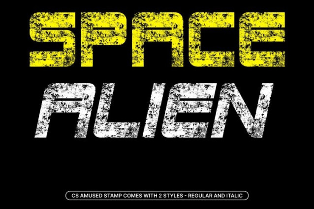 CS Amused Stamp Font This is a bold techno-inspired sans serif display font that fuses futuristic structure with a vintage stamp finish. Its clean, digital geometry is enriched by worn edges, ink irregularities, and textured impressions, giving the font an aged, tactile character. This contrast creates a unique visual identity modern and high-tech at its core, yet expressive and nostalgic.