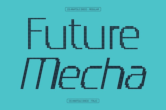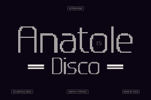 CS Anatole Disco Font This is a modern futuristic display font designed to command attention through sleek geometry, clean sans serif construction, and contemporary energy. Its precise, forward-looking letterforms reflect cutting-edge technology and modern innovation, now enhanced with a subtle disco-inspired vibrancy that adds life and motion.