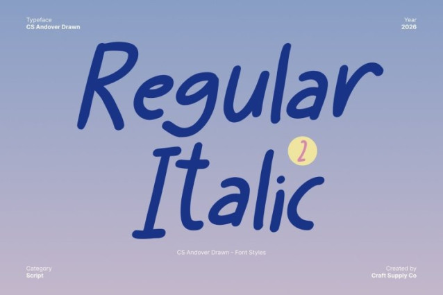 CS Andover Drawn Font This is a fun and energetic handwritten font designed to bring joy and personality into every design. Its naturally drawn strokes and approachable letterforms create a warm, casual look that instantly feels friendly and inviting. Each character carries a lively spirit, making the font ideal for projects that aim to feel youthful, cheerful, and engaging.