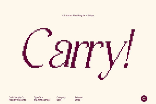 CS Anthea Pixel Font This is an elegant serif typeface created to deliver a refined and luxurious visual experience. Its carefully constructed letterforms and balanced proportions convey polish, confidence, and quiet sophistication. Rooted in classic serif traditions and enhanced with subtle modern styling, this font offers a timeless aesthetic that elevates any design with grace and authority.