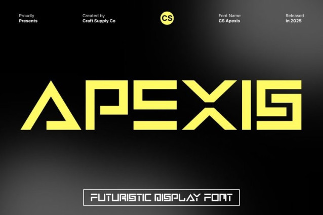 CS Apexis Font – This is a futuristic display font rooted in industrial brutalism and modern techno aesthetics. Designed with clean lines and sharp structures, this typeface delivers a bold, forward-looking appearance that instantly elevates contemporary design projects. Its strong construction and modern attitude make a powerful visual tool for designers who want their work to feel innovative, technical, and uncompromising.