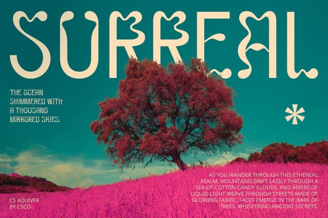 Expressive and Engaging Aesthetic The trippy, psychedelic style of CS Aquiver brings a playful and vibrant energy to your designs. Whether you’re creating promotional materials or artistic graphics, this font adds a unique touch that captures attention and evokes a sense of fun and creativity.