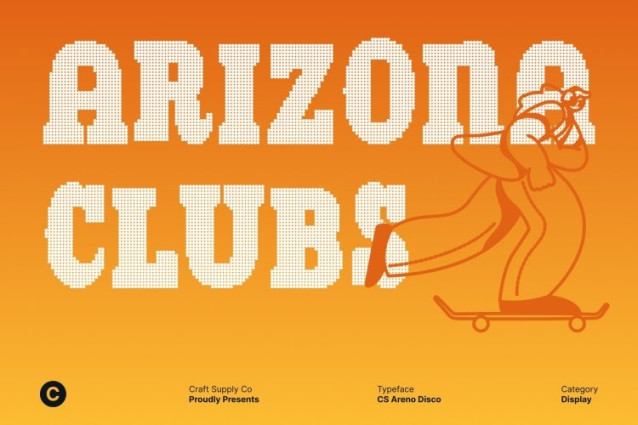 CS Areno Disco Font This is a slab serif font that fuses retro charm with modern assertiveness. Its bold serifs, sturdy construction, and vintage-inspired shapes create a strong visual identity that stands out instantly. Every letter feels confident and grounded, delivering a powerful presence with a nostalgic edge.