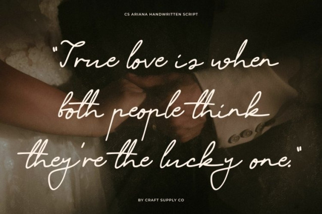 CS Ariana Font This is a romantic script font designed to express beauty, softness, and timeless elegance. Flowing with gentle movement and graceful detail, this font captures the charm of classic handwritten romance while maintaining a refined and polished appearance. Its delicate curves and smooth connections create an inviting visual rhythm that feels emotional, elegant, and effortlessly beautiful.
