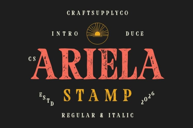 CS Ariela Stamp Font This is a modern classic serif font that thoughtfully blends traditional serif craftsmanship with a clean, contemporary sensibility. Its neatly defined serifs and well-balanced contrast between thick and thin strokes create a strong yet elegant foundation. The structured and symmetrical letterforms deliver a refined visual rhythm, making the font feel stable, dignified, and timeless.
