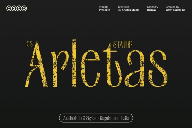 This font is used only for demos (Demo license). If you want to use this font for commercial use please contact: https://craftsupply.co/product/cs-arletas-stamp/