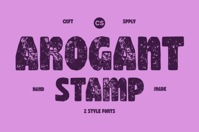 CS Arogant Stamp Font This is a bold modern sans-serif font that blends confident, solid shapes with a cheerful and funky spirit. Its strong letterforms create immediate visual impact, while playful proportions inject a sense of fun and creative energy. Designed to stand out, this font delivers a bold personality without losing its modern clarity.