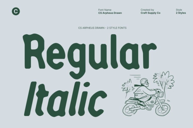 CS Arpheus Drawn Font This is a modern display sans serif font created to deliver a bold visual statement with confident personality. Designed with contemporary sensibilities in mind, this typeface combines strong construction with expressive drawn details that give it a distinctive, handcrafted edge.