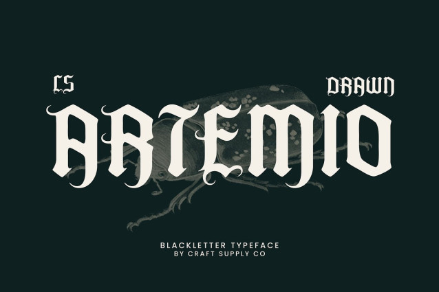 CS Artemio Drawn Font is a display font that embraces modern gothic influences, delivering sharp, high-contrast letterforms with a commanding presence. Its dramatic style evokes intensity and sophistication, perfect for designs that seek to convey power, elegance, or mystery.