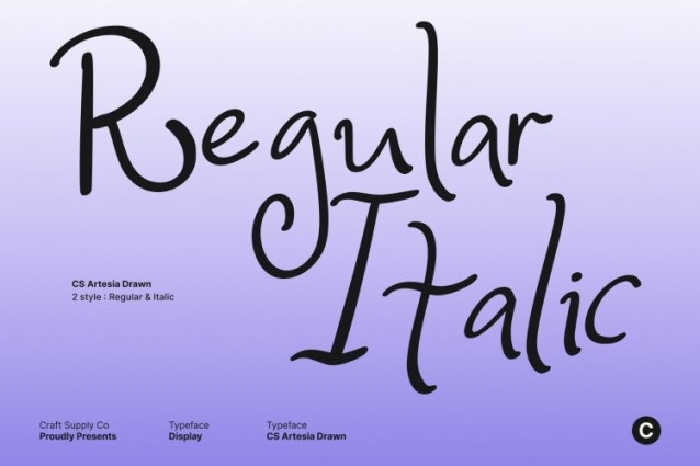 CS Artesia Drawn Font This is a whimsical handwritten font that celebrates the beauty of natural curves and artistic hand-drawn expression. Every stroke flows with intention, creating a sense of warmth, elegance, and personality. Its delicate yet confident form delivers a personal and expressive touch, perfect for designs that value emotion, beauty, and individuality.