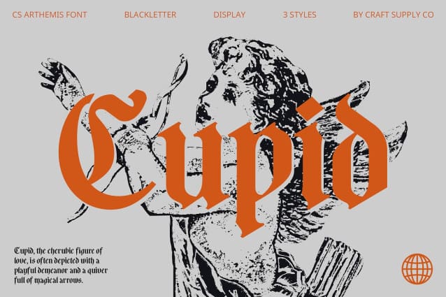 CS Arthemis Font is a Blackletter Medieval display serif font that marries intricate gothic letterforms with a rich historical feel. Its ornate and detailed design evokes a sense of grandeur and tradition, perfect for creating an authoritative and dramatic impression.