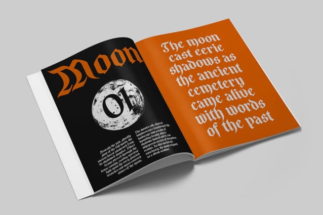 Evokes Tradition and Authority The intricate gothic elements of CS Arthemis convey a sense of tradition and authority, making it ideal for projects that require a bold, elegant presence. Its medieval style enhances the sophistication and gravitas of luxury branding and formal design applications.