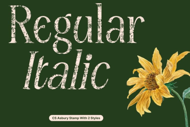 Sharp, slender serifs and subtly tapered strokes define this font graceful structure. The added stamp effect introduces organic imperfections soft roughness, textured edges, and slight distress giving the font a vintage, handcrafted feel. This contrast between refined form and aged texture creates depth and character without sacrificing readability.